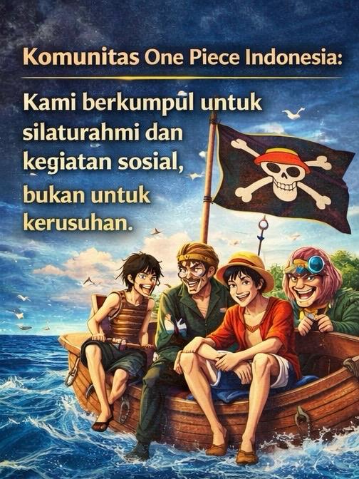 Oleh karena itu, kami mengimbau kepada seluruh pihak agar tidak membawa, menggunakan, atau mengaitkan atribut One Piece dalam kegiatan yang berpotensi menimbulkan konflik, kekerasan, maupun tindakan yang melanggar hukum. Penggunaan simbol komunitas di luar konteks yang semestinya tidak hanya merugikan citra komunitas, tetapi juga dapat menimbulkan kesalahpahaman di tengah masyarakat luas.