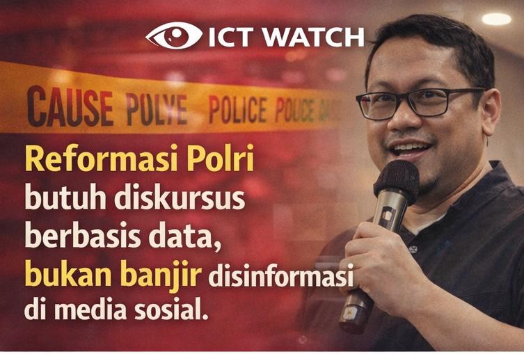 ICT Watch menyoroti situasi media sosial yang belakangan ini dipenuhi oleh berbagai narasi negatif yang mengarah pada ujaran kebencian dan penyebaran hoaks, khususnya yang menyasar institusi Kepolisian Negara Republik Indonesia di tengah momentum pelaksanaan reformasi Polri. Fenomena ini dinilai tidak hanya merusak kualitas ruang digital, tetapi juga berpotensi mengganggu proses pembenahan institusi yang seharusnya mendapat dukungan melalui diskursus publik yang sehat dan berbasis data.
